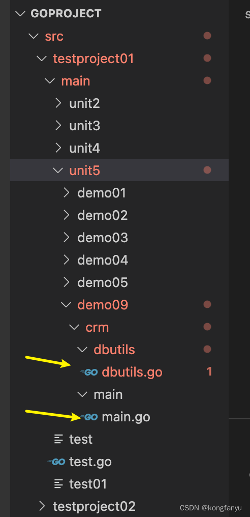 main.go:6:8: package testproject01/main/unit5/demo09/crm/dbutils is not in GOROOT (/usr/local/go/src/testproject01/main/unit5/demo09/crm/dbutils)项目结构: