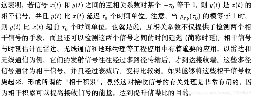 互协方差函数涉及两个不同信号x(t)和y(t)之间的相乘,一般来说,这两个减去均值的信号存在共性部分(确定量)和非共性部分(随机量),而共性部分的相乘总是去相同的符号,使得该部分得到加强而保留下来。与之不同,两个信号的非共性部分是随机的,它们的乘积有时取负,有时取正,通过数学期望的平均运算后,趋于相互“抵消”。