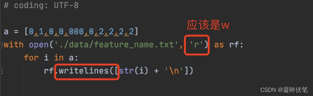 这个异常翻译一下:不支持写入的权限,仔细检查了一下代码,open()文件时,的权限写错了,最近打开文件比较频繁,习惯性的写上 了'r',只读,这个权限。改为'w',写,权限后,可以正常写入。