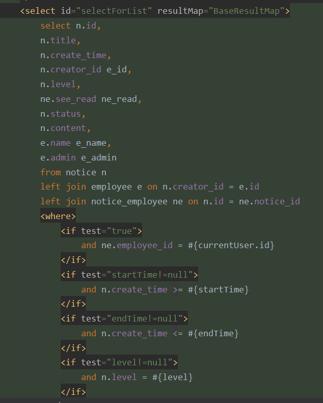 - 这里使用到了连表,公告表的当前用户的id也就是中间表的员工id,公告表的id也就是中间表的公告id,那么就能查出所对应的see_read(是否可读状态)了