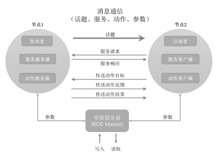 话题、服务、动作最终的通讯都是建立在以上的连接过程。发布者,订阅者,服务服务器,服务客户端,动作服务器,动作客户端分布节点中的通讯建立过程都是基于节点单位来建立的,在建立好通讯后才执行各自的信息交流。
