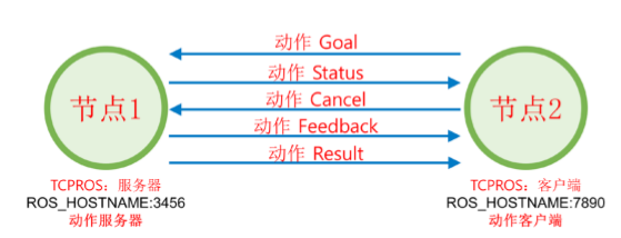 动作的通讯方式与服务有类似的情况,不同的是动作服务器收到请求后直至完成响应所需时间较长,中途需要反馈给客户端目前完成的情况,报告当前的现状。
