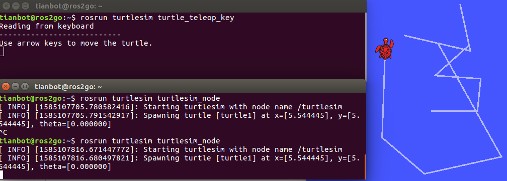 运行键盘控制节点,向主节点注册键盘的信息,rosrun turtlesim turtle_teleop_key: