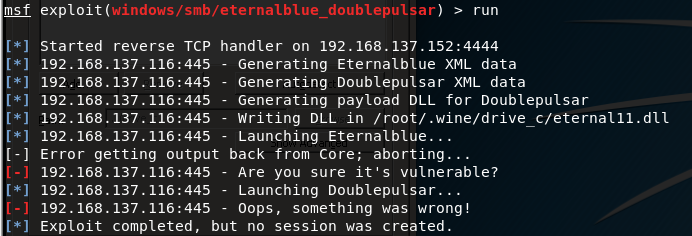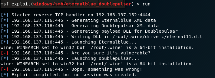 首先,在使用Eternalblue_doublepulsar这个模块的时候,一定需要你安装wine32,这个wine32是在linux环境下模拟windows环境,可以安装windows平台的软件,软件很厉害,但是Bug真的很多,你在网上搜下,有N多人在Github上提交这个软件的Bug,我一度认为我所遇到的问题中就是一个Bug。如何安装呢?