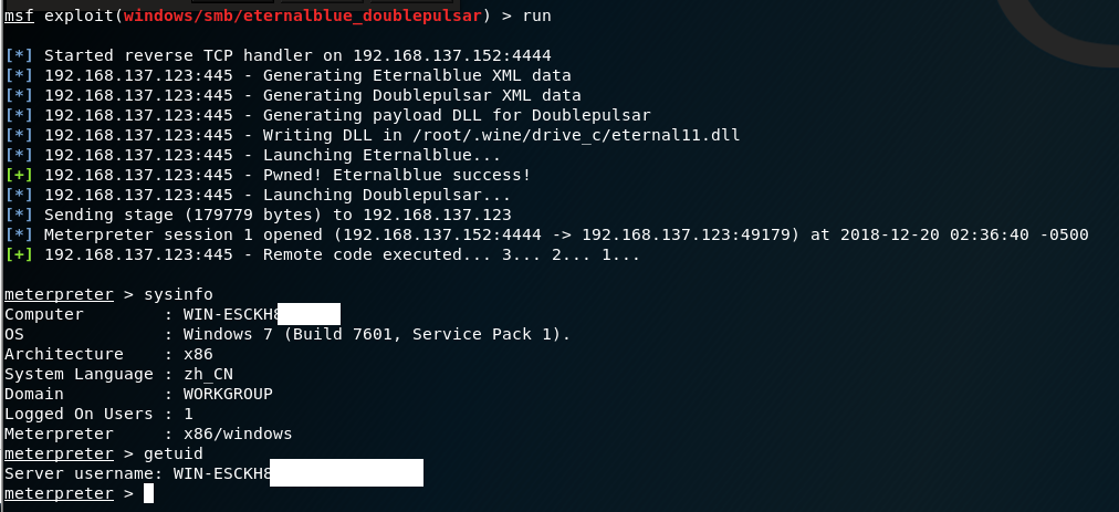 run如果按照以上8个步骤操作完以后,没有报错,你看到的是反弹回来的shell,恭喜你,一次性成功。
