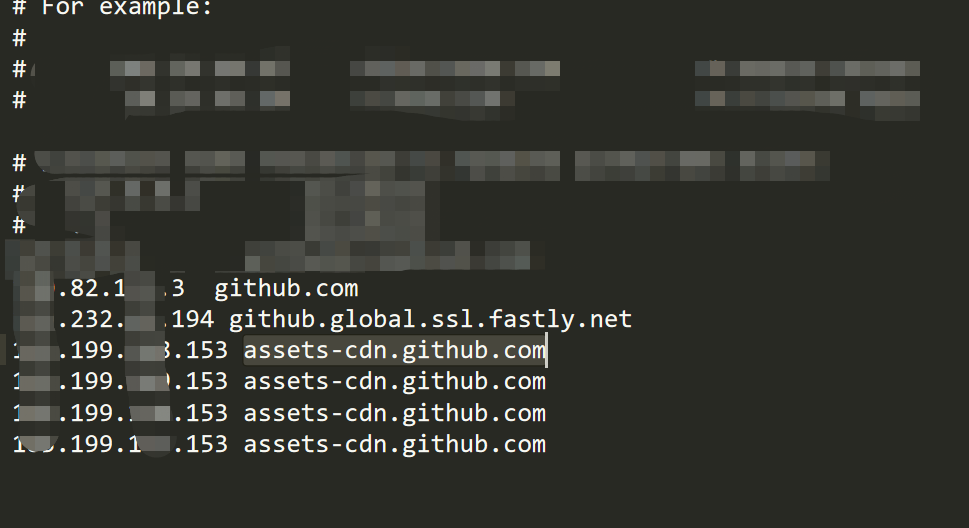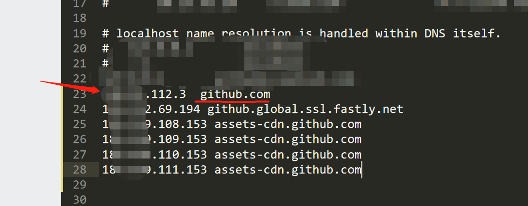 ctrl+c它们 干到hosts的下一行并空格后补上assets-cdn.github.com,记得是这四句后面都加上