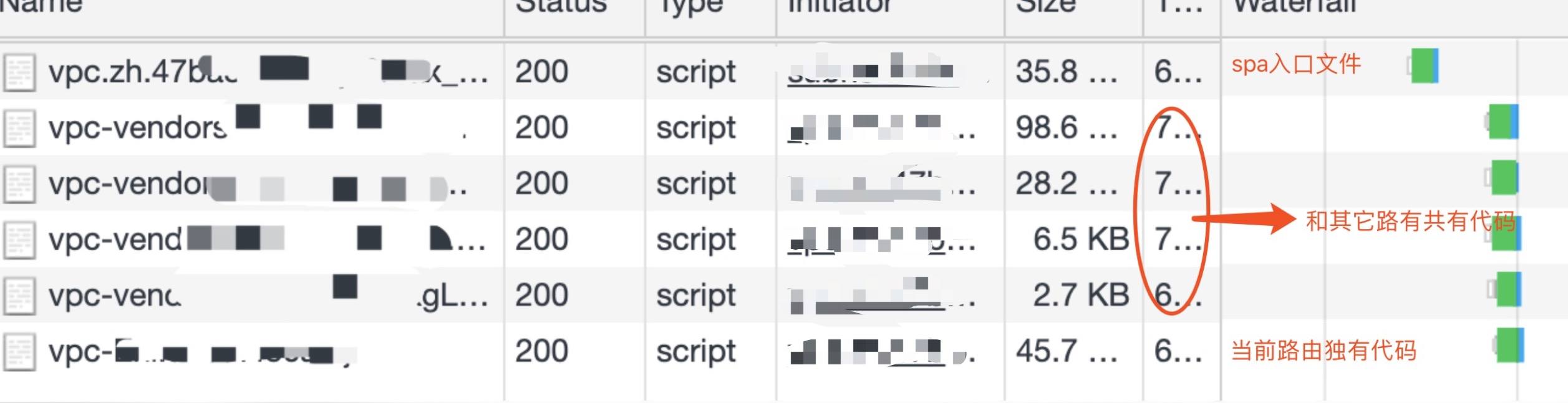 这里以腾讯云某控制台页面以下为例,使用 webpack 路有异步加载效果后如下。可以看到,第一次访问页面。这里是先请求到一个总的入口 js,然后根据我们访问的路由(路由 1),再去加载这个路由相关的代码。这里可以看到我们异步加载的 js 数为 5,就相当于上面提到的默认配置项maxAsyncRequests,通过waterfall可以看到这里是并发请求的。如果再进去其它路由(路由 2)的话,只会加载一个其它路由的 js(或者还有当前没有加载过的 vendor js)。这里如果只修改了路由 1 的自己单独业务代码,vendor 相关的 hash 和其它路由的 hash 也不是不会变,这些文件就能很好的利用了浏览器缓存了