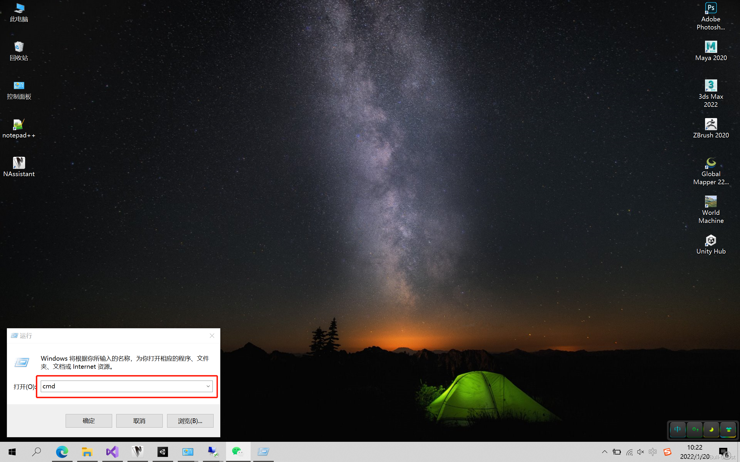 首先在桌面同时按住win+r键,键盘输入cmd回车