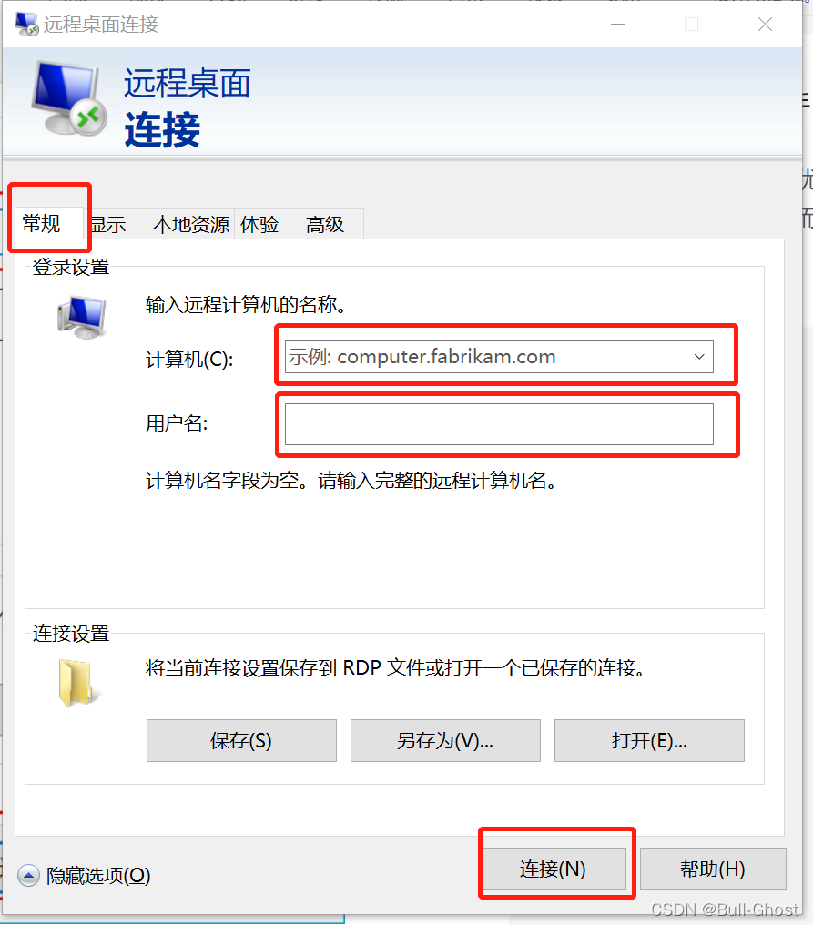 点击常规,在 计算机 位置输入 被控制端的ip地址,即ipconfig/all中的首选ip地址