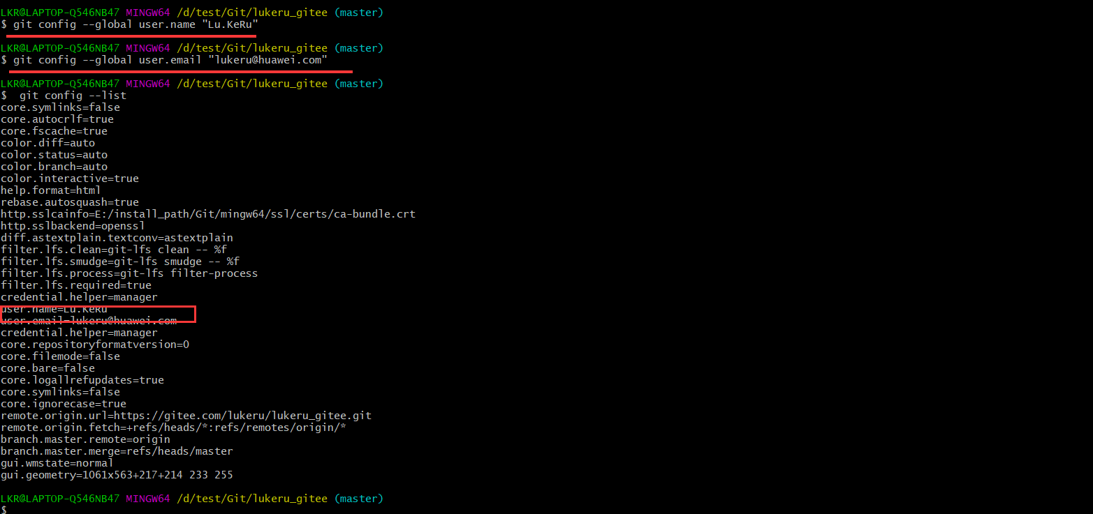 要检查已有的配置信息,可以使用 git config --list 命令: