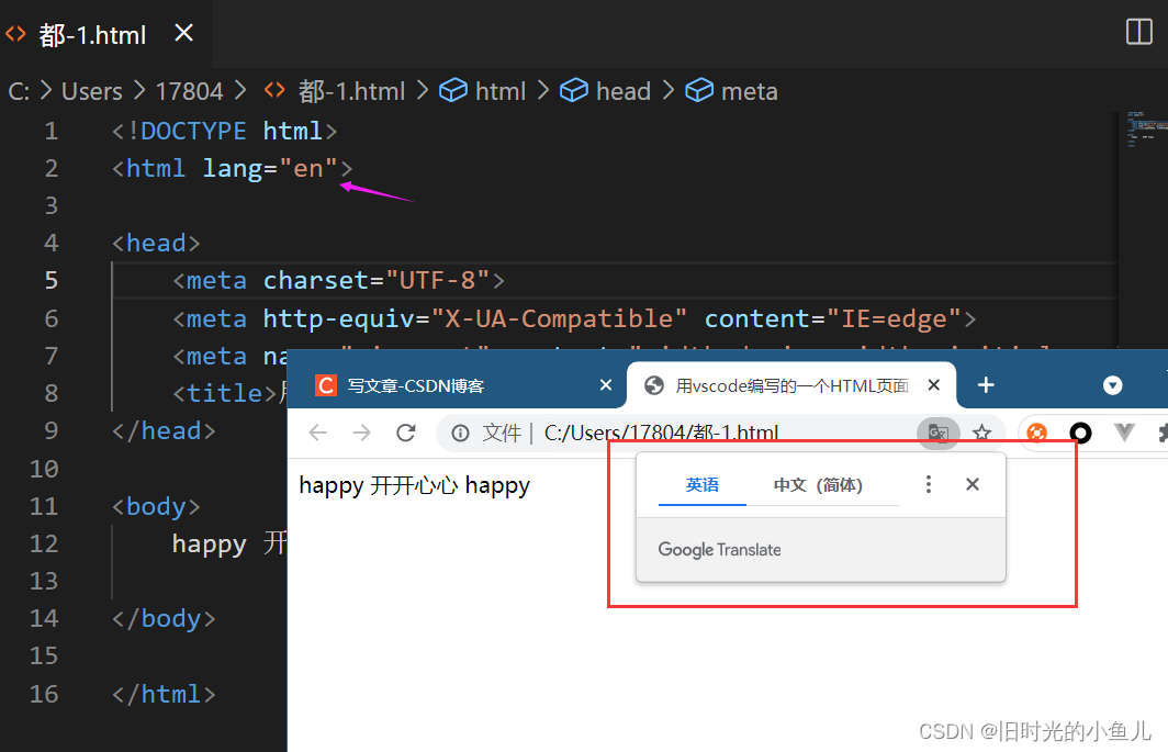 下图是lang属性为en时的页面,仔细看会有一个翻译的弹框