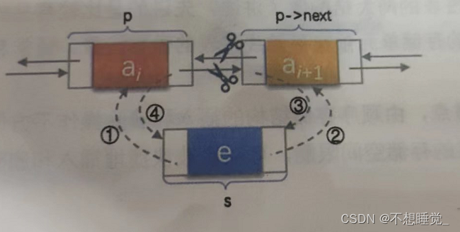 p->next=s;//把s赋值给p的后继双向链表的删除: