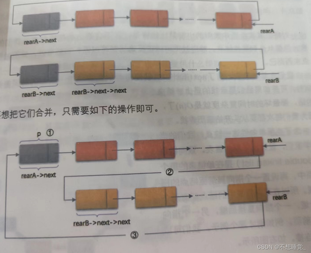 rearA->next=rearB->next->next;//将本事指向B表的第一个结点,赋值给rearA->next