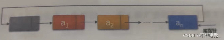 将单链表中终端结点的指针端由空指针改为指向头结点,使得整个单链表形成一个环,这种头尾相接的单链表称为单循环链表,简称循环链表。