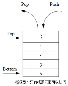 栈(stack)是限定仅在表的一端进行插入、删除操作的线性表,允许插入和删除的一端称为栈顶(Top),表的另一端被称为栈底(Bottom)。当栈中没有元素时称为空栈。栈的插入操作被形象地称为进栈或入栈,删除操作称为出栈或退栈。