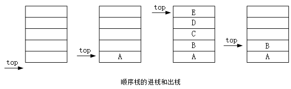 顺序栈的存储结构的进栈和出栈过程如下图: