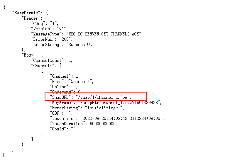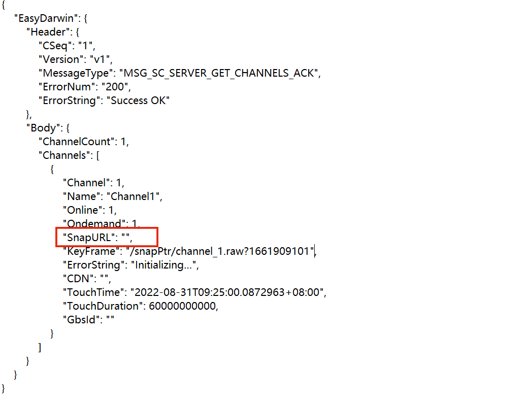 重启EasyNVR之后,再次调用接口,此时的SnapURL已经返回了值。