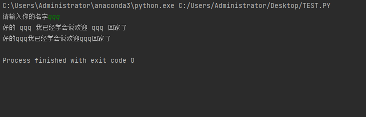 print("好的",x,"我已经学会说欢迎",x,"回家了")