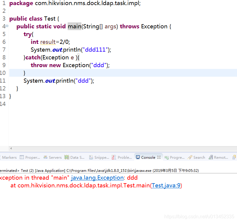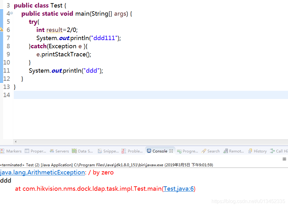 在没有try-catch或try-catch-finally的情况下,程序正常执行到某行,在这行报错后,这行后面的代码就不执行了,程序就停止了,中断了。