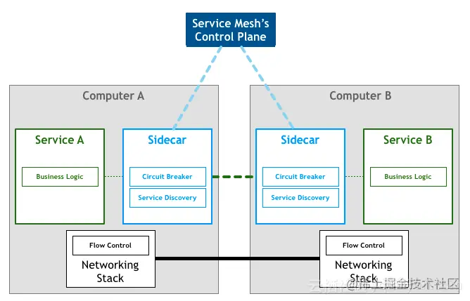 基于以上种种复杂原因催生了服务间通讯层的出现,这个层即不应该与应用程序的代码耦合,又能捕获到底层环境的动态变化并作出适当的调整,避免业务出现单点故障;同时也可以让开发者只关注自身业务,将应用云化后带来的诸多问题以不侵入业务代码的方式提供给开发者。