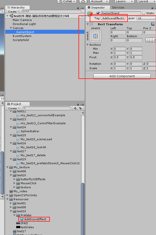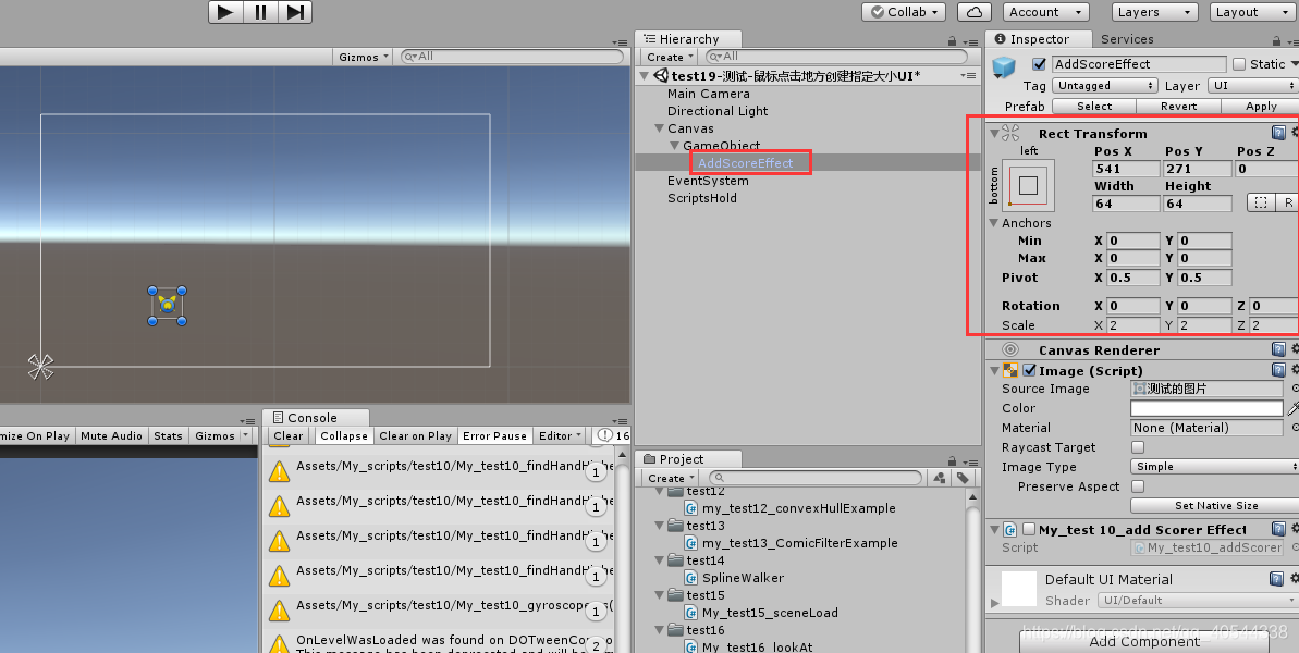 ①addScoreEffect_instantiate.GetComponent<RectTransform>().anchoredPosition3D = vec3;//必须使用3d,否则会出现UI的Z轴数值很变态,跑出UI很远,