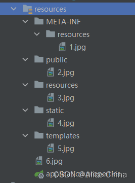 static-path-pattern: /**如上配置之后,6.jpg可以访问,但是其他资源将不可访问。这是因为在 自定义配置静态资源的路径之后,默认配置就会失效。开发中,我们使用默认配置即可。