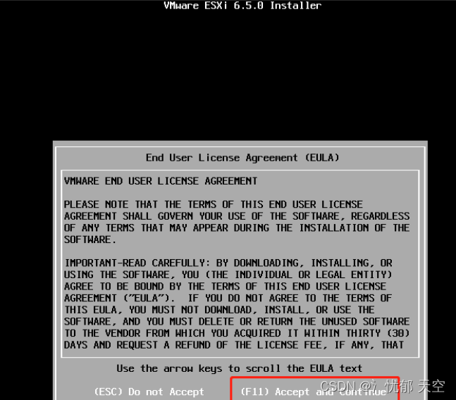 在End User License Agreement(EULA)界面中,按F11键执行