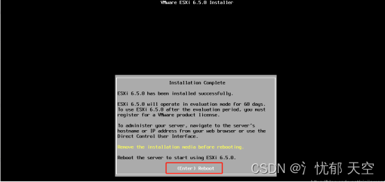 Esxi6.7.0安装完成,回车重启