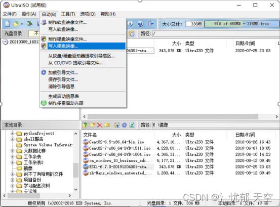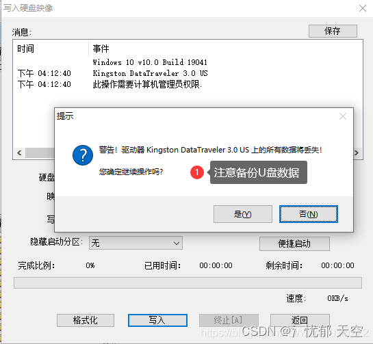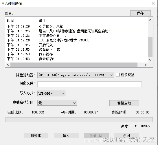 选择 启动 写入镜盘映像