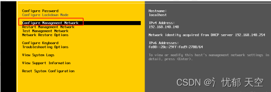 选中Configure Management Network并回车进入网络管理配置