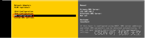 选中”DNS Configuration“并回车后设置DNS和主机名