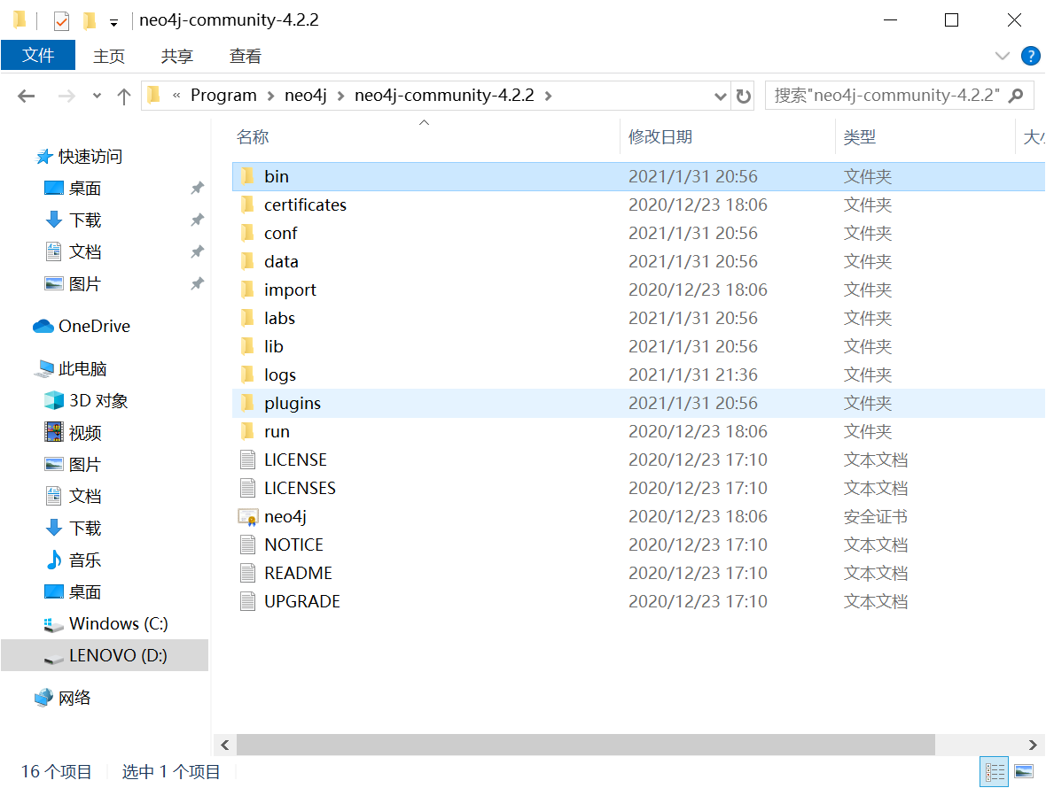 获得Neo4j压缩包后,将其解压到指定目录