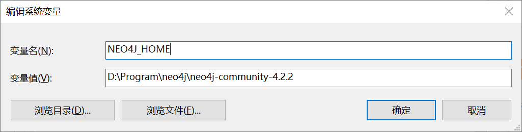 新建系统变量NEO4J_HOME,其变量值为Neo4j的解压目录