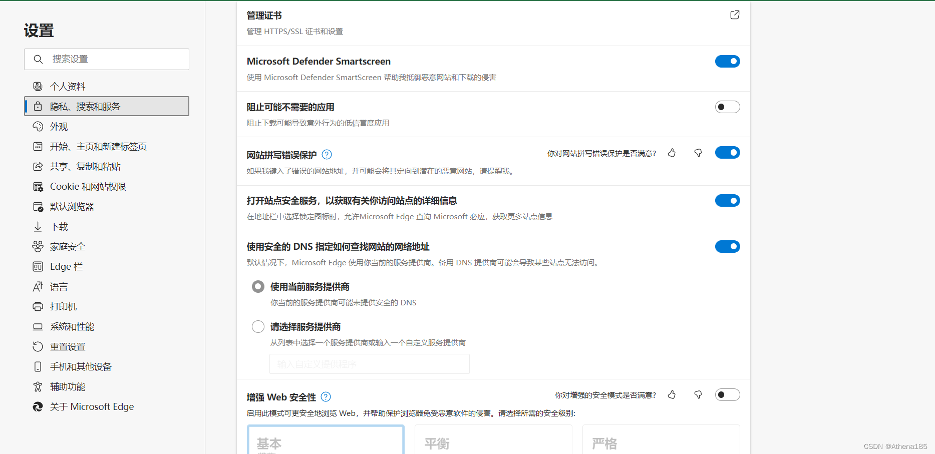 第二步 找到隐私搜索服务这个界面,往下拉,找到使用安全的DNS指定如何查找网站的地址,选中使用当前服务提供商,设置完毕后,在关掉重新打开就好了。