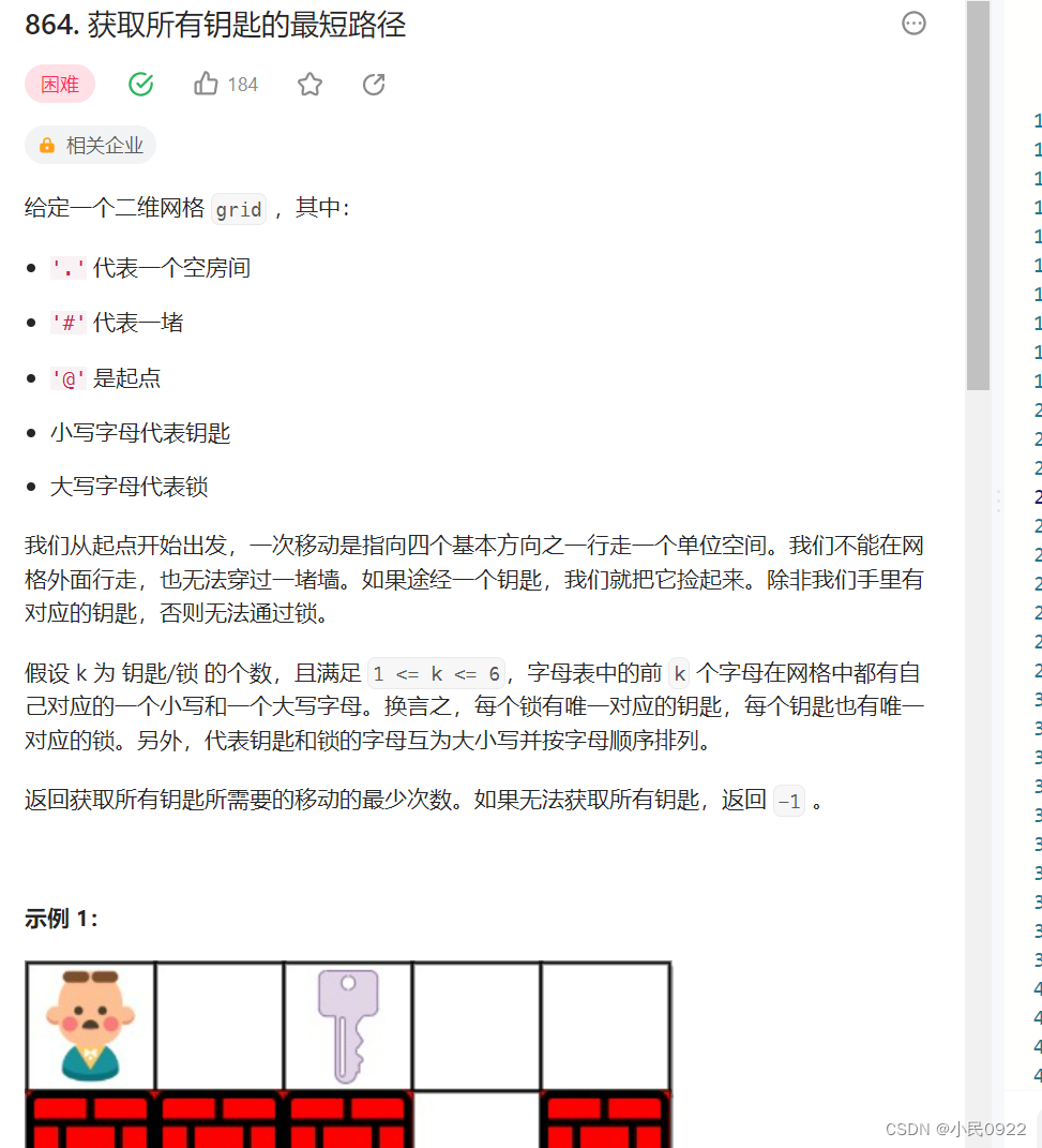 当我们搜索到一个 mask每一个二进制都为 1 的状态时,说明获取了所有钥匙,此时就可以返回最短路作为答案。