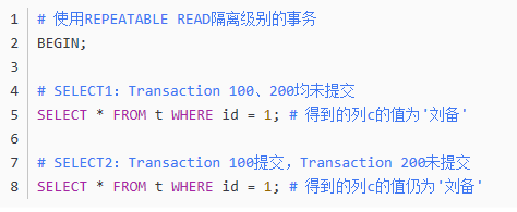 假设现在有一个使用REPEATABLE READ隔离级别的事务开始执行: