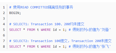 假设现在有一个使用READ COMMITTED隔离级别的事务开始执行: