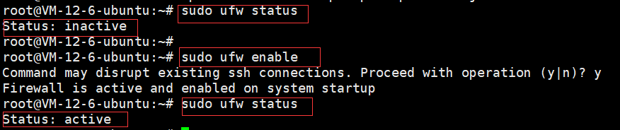 四、设置ubuntu防火墙(开启防火墙以及查看防火墙状态)