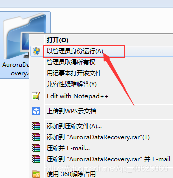 步骤1:先百度搜索并下载软件打开后,直接双击需要恢复的分区,然后解压再右击软件图标选择《以管理员身份运行》软件(如果是xp系统可以直接双击打开软件)