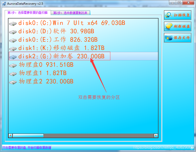 注意事项2:数据错误循环冗余检查恢复出来的数据需要暂时保存到其它盘里。