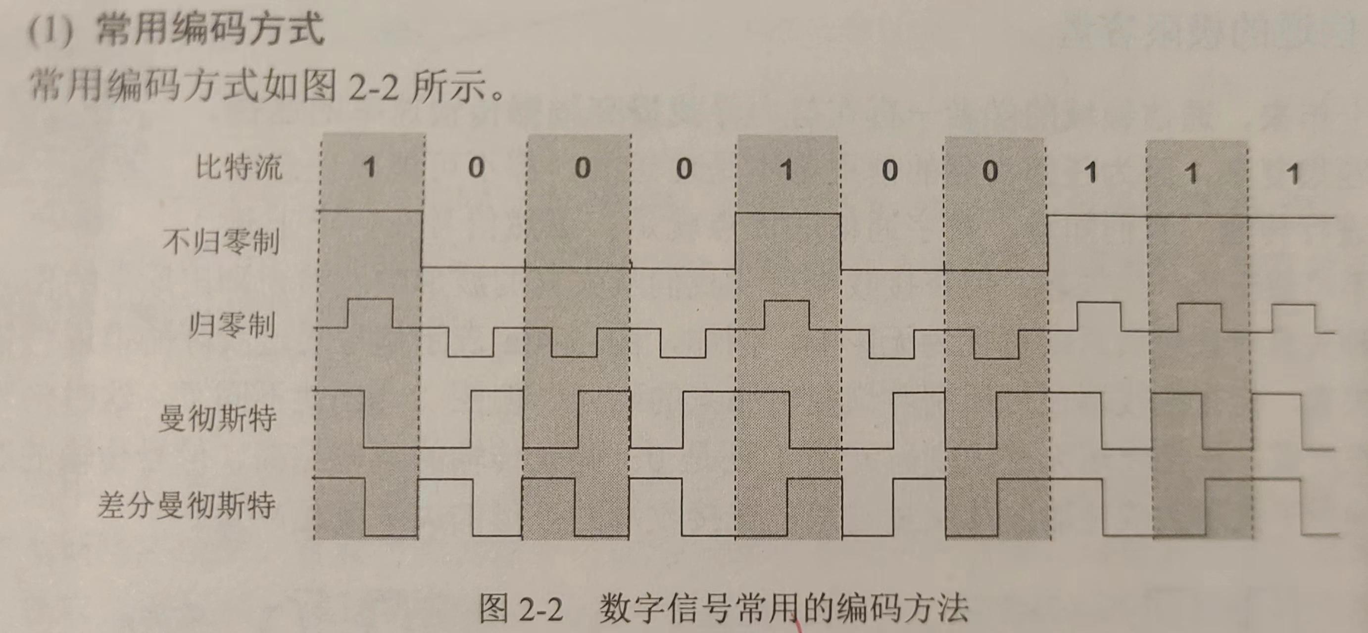 注:曼彻斯特编码产生的信号频率比不归零制高,不归零制不能从信号波形本身中提取信号时钟频率(这叫做没有自同步能力),而曼彻斯特编码具有自同步能力。