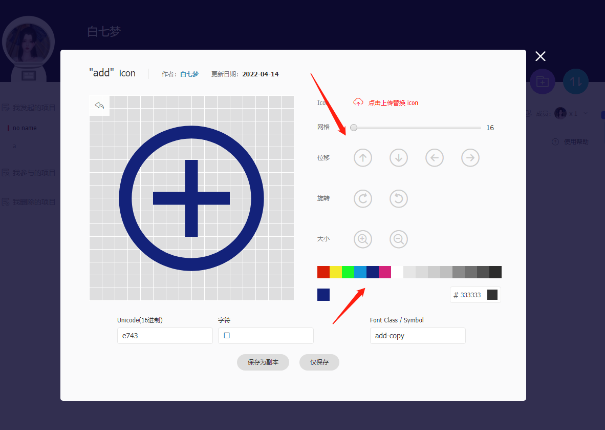 //icon-add是刚刚复制的,menuic是自定义的一个class也生效10.修改样式颜色大小