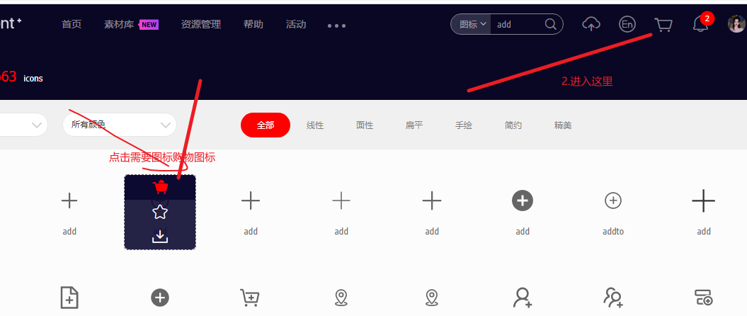 2.把所有用的添加至购物车点击需要图标上的,点击导航条的购物车图标