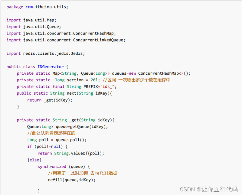 如图中所示我们可以使用同一的redis服务器生成id,具体的代码实现 这里使用java实现 使用jedis作为通信的工具包,封装两个工具类。第一个类是用来封装跟redis获取连接相关工具类。