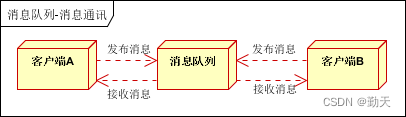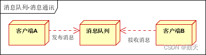 客户端A和客户端B使用同一队列,进行消息通讯。