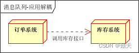 场景说明:用户下单后,订单系统需要通知库存系统。传统的做法是,订单系统调用库存系统的接口。如下图: