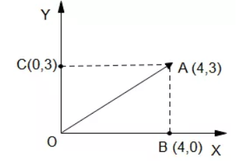 如上图,A点的坐标是(4,3),那么这个矢量OA就可以记为(4,3)。然后,我们把矢量OA沿着x轴y轴做一个分解: