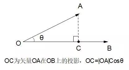 关于矢量点乘的事情,我在积分篇的第六节就已经说过一次了,因为电场的通量Φ就是电场E和面积a的点乘:Φ=E·a。因为矢量是既有大小又有方向的量,而我们小时候学习的乘法它只管大小不管方向,所以两个矢量之间就得重新定义一套乘法规则,而最常见的就是点乘(符号为‘·’)。两个矢量OA、OB的点乘被定义为:OA·OB=|OA||OB|Cosθ(矢量的表示原本是在它头顶上加一个箭头,但是这里不方便这样表示,那就用黑体表示了)。它表示一个矢量OA在另一个矢量OB上的投影OC(OC=|OA| Cosθ)和另一个矢量的大小的乘积,可见两个矢量点乘之后的结果是一个标量(只有大小没有方向)。
