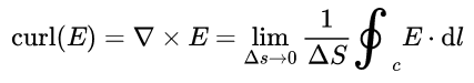 这个版本的把原来对整个磁通量(B·da)的求导变成了只对磁感应强度B的求偏导,这就把磁感线通过曲面面积变化的这种情况给过滤了。在积分形式里有这样两种区别,但是在微分形式里就没有这种区分了。为什么?你想想我们是怎么从积分变到微分的?我们是让这个曲面不停的缩小缩小,一直缩小到无穷小,这个无穷小的曲面就只能包含一个没有大小的点了,你还让它的面积怎么变?所以我们的微分形式就只用考虑磁感应强度B的变化就行了(对应后面那个法拉第定律)。我们现在假设把那个曲面缩小到无穷小,方程的左边除以一个面积ΔS,那就是电场的旋度▽×E的定义: