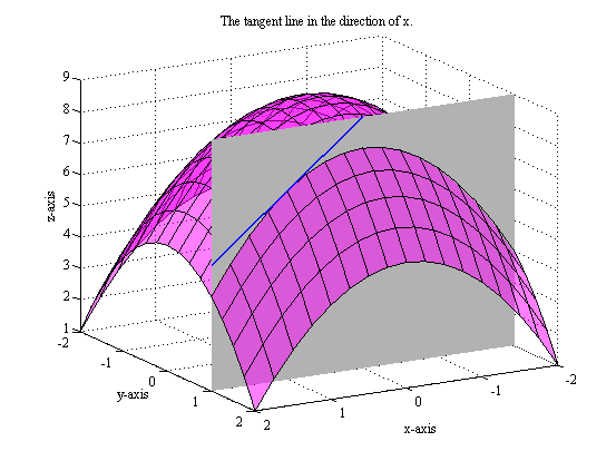 比如山的高度z是关于位置x,y的二元函数z=f(x,y),这时候地面上的每一个点(x,y)都对应一个值,它的函数图像就是一个曲面(如山的表面),而不再是一条曲线。而曲面上的每一个点有无数个方向(前后左右360°都可以),x和y只是这无数方向中的两个,那我们要如何把握这无数个方向上的高度变化快慢呢?当然,我们不可能把这无数个方向都一一找出来,也没这个必要。一个平面上有无数个点,但是我只用x和y这两个方向组成的(x,y)就可以表示所有的点。同样的,虽然在函数曲面上的一点有无数个方向,不同方向函数变化的快慢都不一样的,但是我们只要把握了其中的两个,就能把握很多信息。那么我们要如何表示函数z沿着x轴方向变化的快慢呢?直接用dz/dx么?好像不太对,因为我们的z是一个关于x和y的二元函数,它的变量有两个,你这样直接dz/dx合适么?合法么?但是,如果我在考虑x轴方向的时候,把y看作一个常数,也就是把y轴固定住,这样函数z就只跟x相关了,于是我们就把一个二元函数(曲面)变成了一个一元函数(曲线)。